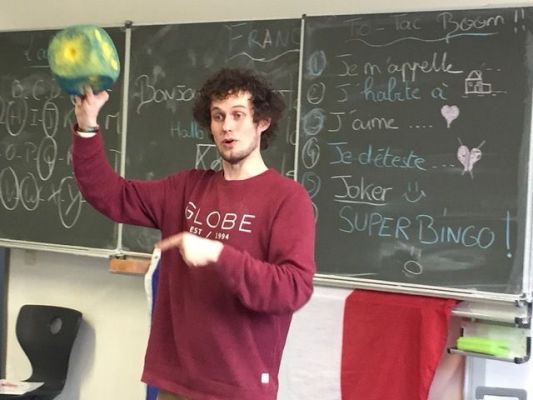 Spielerisch geht es dann an die neue Sprache. Mit ansteckend guter Laune und viel Lob motiviert der 27-jährige Lektor Loic Pointeaux die Sechstklässler, die schnell begeistert mitmachen. Sie stellen sich auf französisch vor und können nach kurzer Zeit bereits Auskunft über ihren Wohnort geben, „J’habite à Peine“, ihre Vorlieben nennen, wie z.B. „Moi, j’aime le chocolat, le foot...“, und die Frage „Comment ça va?“ beantworten: „Ça va super!“