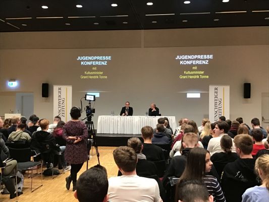 Auf dem Programm stand die Jugendpressekonferenz im BZV Medienhaus mit dem niedersächsischen Kultusminister Grant Hendrik Tonne (SPD).