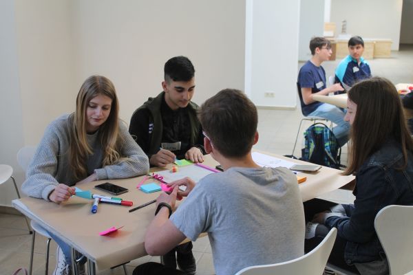 Der zweite Projekttag sollte im Folgenden den Fokus darauf legen, die Interessensgebiete der Mitschüler*innen zu erforschen, um im Anschluss Ausstellung und Interessen kreativ zu kombinieren. Dazu haben die Schüler*innen entsprechende Interviews zunächst erarbeitet und später erfolgreich durchgeführt. kreismuseum3Durch die Designthinking-Methode wurde den Achtklässlern immer bewusster, mit welchem Blick Jugendliche durch die Ausstellung gehen und was ihnen dabei fehlt und die ersten Ideen schwirrten bereits in den Köpfen der Nachwuchsdesigner*innen. Wir sind schon gespannt, welche konkreten Ideen die Schüler*innen während des dritten Workshoptages kreieren werden.