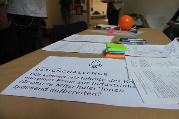 Unter der Anleitung der professioneller Designer Sarah Zerwas und Kristof von Anshelm von der Agentur „von AundZ“ aus Braunschweig verfolgen sie dabei eine sogenannte Design-Challenge, deren Ziel es ist, die Inhalte des Peiner Kreismuseums für Mitschüler*innen interessant aufzubereiten.