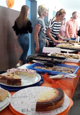 Jede Klasse hatte sich wieder einen tollen Beitrag für das Schulfest überlegt: So wurden beispielsweise Waffeln für soziale Zwecke verkauft, die Treffsicherheit beim Dosenwerfen unter Beweis gestellt, auch heiße Mülltonnenrennen wurden sich geliefert und Enten geangelt. Kaffee und jede Menge leckerer, selbstgebackener Kuchen und Torten – gespendet von zahlreichen Eltern und Schüler*innen - luden zu einem netten Plausch vis-à-vis zur AWT-Küche ein.