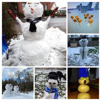 schm13-COLLAGEDies sind die großartigen Ergebnisse einer freiwilligen Zusatzaufgabe, die Claas Sparringa, Referendar an der IGS Peine, den Klassen 8.1, 8.5 und 9.4 spontan am Di., 26.1. gestellt hat, nachdem es geschneit hatte. Ein prima Ausgleich zu Mathe, Deutsch, Englisch & Co., wie die zahlreichen tollen Fotos zeigen :-)!