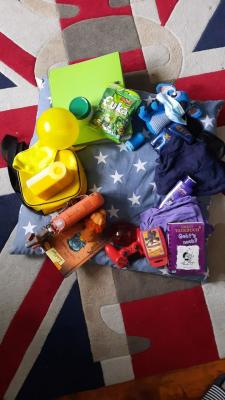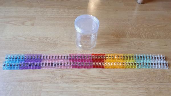 Die Schüler sollten mit Gegenständen aus ihrem häuslichen Umfeld einen Farbkreis mit Primär-, Sekundär- und Tertiärfarben legen.