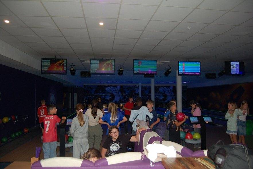 Nach dem Abendessen fuhren wir noch zur Bowlinghalle. Wir gingen eine kurze Stecke und mussten an der Bowlinghalle kurz warten, aber dann konnten wir die Bowlingschuhe anprobieren und zu den vier Bahnen gehen, die wir gemietet hatten. Wir trugen die Namen ein und dann ging es auch schon los. Das Bowling war sehr toll und hat uns viel Spaß gemacht.