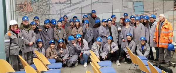 Zu Beginn trafen wir uns alle im Infocenter, wo wir allgemeine Informationen zum Stahlwerk und zur Stahlproduktion erhielten. Anschließend mussten wir uns mit Helm, Schutzbrille und Kittel ausstatten, denn Sicherheit steht dort an erster Stelle. So „verkleidet“ wurden wir in zwei Gruppen eingeteilt und starteten unsere Rundgänge. Unsere Gruppe besichtigte zuerst die Walzstraße und wir waren total beeindruckt von den riesigen Maschinen und dass alles - fast wie durch Zauberei – automatisch passierte. Es war stellenweise sehr laut, richtig heiß und alles war von einer dicken Staubschicht überzogen. Besonders beeindruckt hat uns dann aber der Hochofen in der Stahlproduktion. Es war überwältigend, dabei zuzusehen, wie er sich geöffnet hat und die meterhohen Flammen in die Höhe schossen. Natürlich standen wir ein ganzes Stück weg.