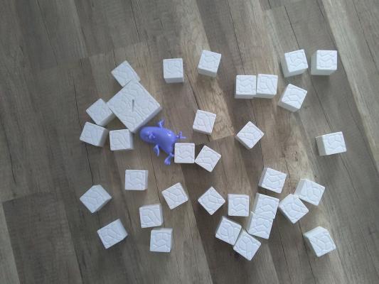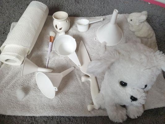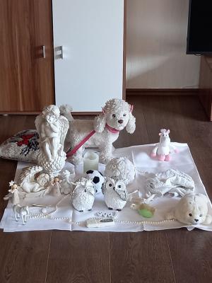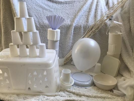Angesichts der Schneelandschaft vor der Tür (zu Beginn des Jahres) wurden die Schüler aufgefordert, aus rein weißen Gegenständen und Tüchern im Inneren eine Assemblage (vorübergehendes Zusammenfügen dreidimensionaler Objekte zu einem Kunstwerk) zu bauen und diese als Foto einzureichen.