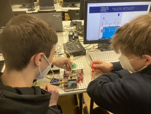 Seit einem Jahr laufen die Vorbereitungen für die Einrichtung des Labors auf Hochtouren. Einhergehen damit auch die Vermittlung von theoretischen Grundlagen der Robotik aus dem Bereich Messen, Steuern und Regeln.