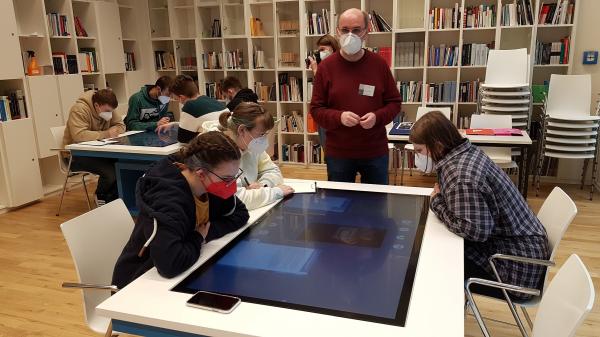 Dass sich die NS-Justiz nach außen hin einen Anschein von Rechtmäßigkeit gab, konnte an Dokumenten erarbeitet werden, die den Schülerinnen und Schülern an modernen Informationstischen mit Multi-Touch-Funktionen zur Verfügung gestellt wurden. Hier kann man anhand von Briefen, Fotos, Urteilen und weiteren Materialien erarbeiten, wie weit das NS-Regime von rechtsstaatlichen Prinzipien entfernt war. Abgerundet wurde der Workshop mit dem Besuch der Ausstellung. Auch hier findet man eine Fülle von Informationen und Exponaten, die durch den Einsatz modernster Medien zum Selbststudium einladen.