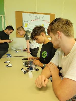 Ein weiterer Schwerpunkt des Kurses lag auf der elektronischen Verdrahtung und Programmierung des Autos. Ausgestattet mit einem Arduino-Board, lernten die Schüler, wie sie Sensoren und Motoren in das Fahrzeug integrieren und die notwendige Software entwickeln konnten. Besonderes Augenmerk lag hierbei auf der Steuerung des Autos über Bluetooth, was den Schülern auch grundlegende Kenntnisse in der App-Programmierung vermittelte.