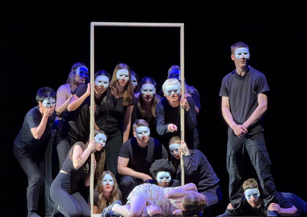 Spannende Bilder, anspruchsvoll choreografierte Tänze und witzige Szenen wechselten sich mit nachdenklicheren und auch schockierenden Eindrücken ab. So gab es einen „Catwalk der Selbstbestrafungen“, bei dem, unterstützt durch eine Live-Kamera auf der Bühne, eindrücklich klar wurde, wie grausam junge Menschen heutzutage zu sich selbst sein können – da braucht es gar keine Strafen mehr von außen. Auch mit der Rolle von Tik Tok und Instagram setzten sich die Spielenden in einer weiteren Szene durch grausame Hate-Kommentare auseinander. Beeindruckend!