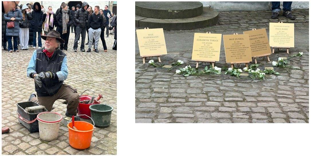 Auch Angehörige kamen zu Wort und erzählten von den Schicksalen der Verfolgten, was viele Anwesende sichtlich berührte. Die Atmosphäre war nachdenklich und ergriffen. Blumen wurden niedergelegt, während die neu verlegten Stolpersteine nun dauerhaft an die Opfer erinnern.