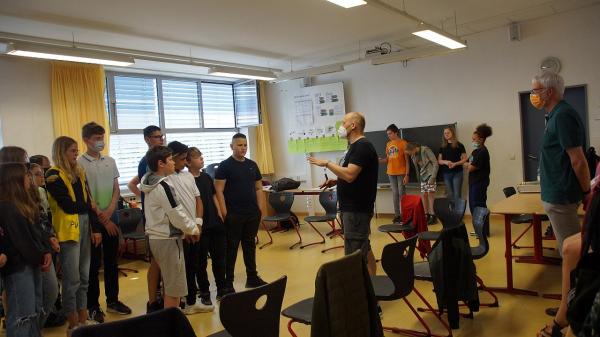 Die bisher üblichen Hausaufgaben gibt es bei uns nicht. Stattdessen lernen die Kinder im Rahmen der betreuten Freiarbeit, zunehmend selbstständig und doch gemeinsam zu üben und sich zu entfalten. Hinzu kommen die Tutorenstunde (TUT) für organisatorische Klassenangelegenheiten ganz zu Beginn der Woche und der Klassenrat (RAT), der die Woche beschließt und in dem durch Schüler*innen geleitet das Zusammenleben in der Klasse mit seinen Höhen und Tiefen besprochen und geregelt wird. So und durch das fest im Stundenplan verankerte soziale Lernen wird das Zusammenleben an der Ganztagsschule gestaltet. Zusätzlich planen die Kinder in den ersten Monaten gemeinsam mit einem*r der Sozialpädagog*innen unserer einen Klassenteamtag, an dem sich die Klassen auf eine Kennenlernwanderung mit abschließendem Grillen mit den Eltern begeben.